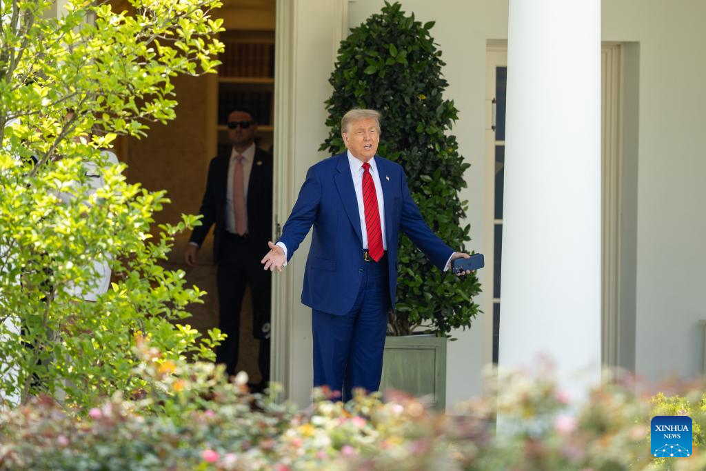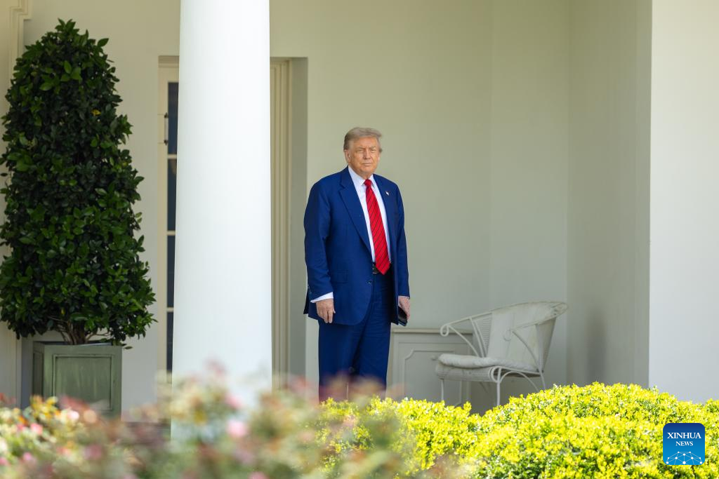 U.S. President Donald Trump looks at the Rose Garden at the White House in Washington, D.C., the United States, on June 20, 2025. Trump said Friday it will be difficult to request Israel stop its airstrikes in Iran, even as he pursues a diplomatic solution to end the conflict. (Xinhua/Hu Yousong)