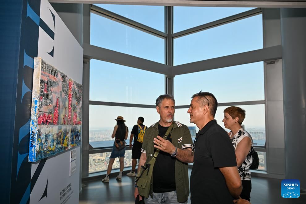 Foreigners visit "the Summit of Tianjin" sightseeing hall of Tianjin World Financial Center (TWFC) in Tianjin, north China, June 22, 2025.