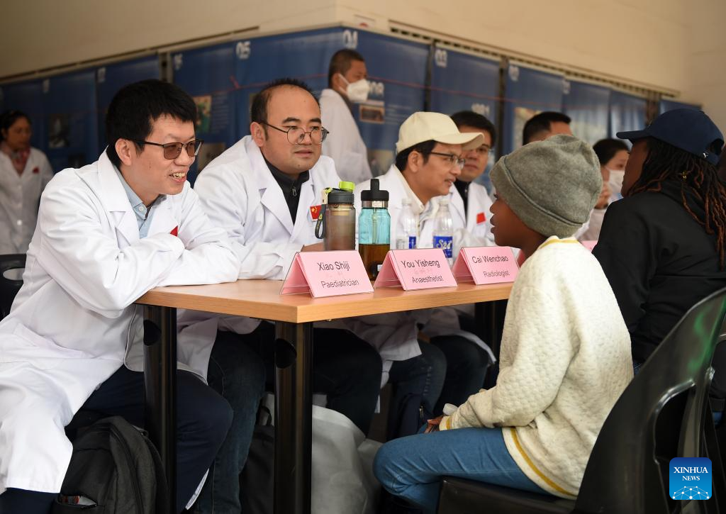 Members of the 17th batch of the Chinese medical team in Botswana provide free consulting service at the SOS Children's Village in Tlokweng, on the outskirts of Gaborone, Botswana, June 22, 2025. The 17th batch of the Chinese medical team in Botswana on Sunday conducted a free medical outreach service and made donations here. (Photo by Tshekiso Tebalo/Xinhua)