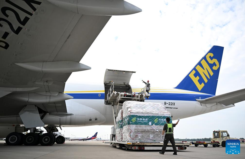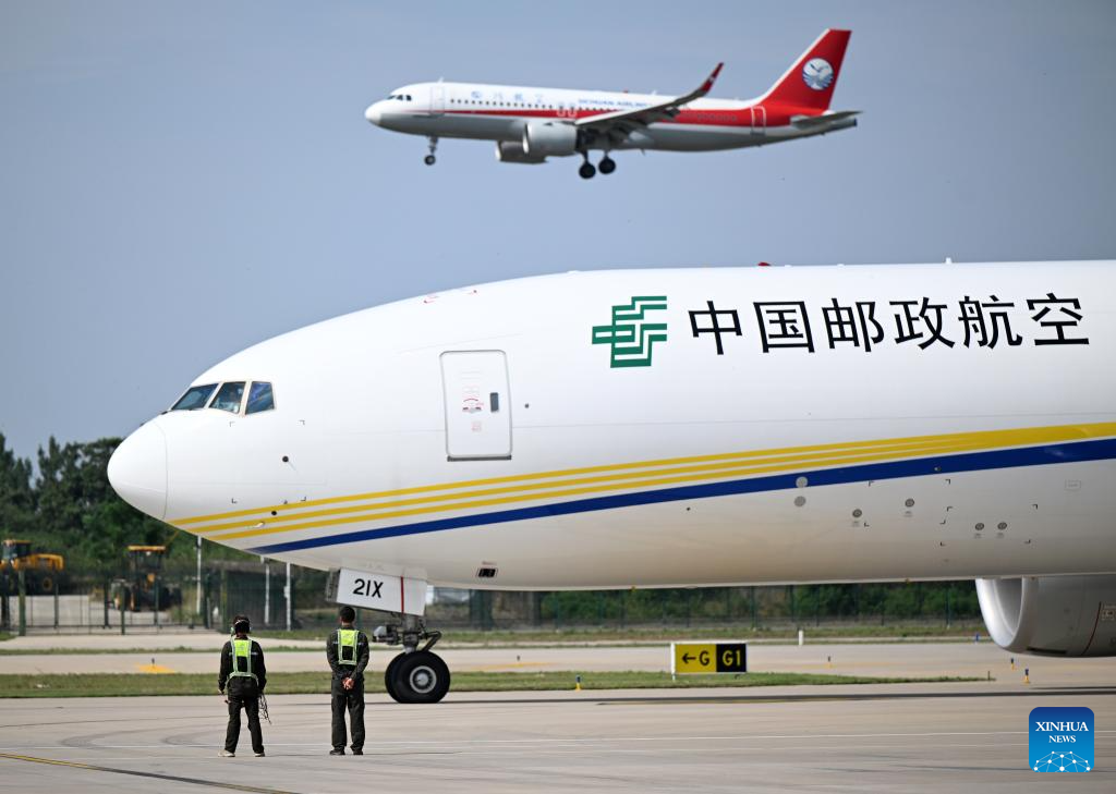 China Postal Airlines officially launched the Zhengzhou-Luxemburg international cargo route on Monday, with an initial weekly schedule. The flight frequency will be increased based on market demand, further strengthening the Zhengzhou-Luxembourg "Air Silk Road" as a thriving multi-industry corridor. (Xinhua/Li Jianan)