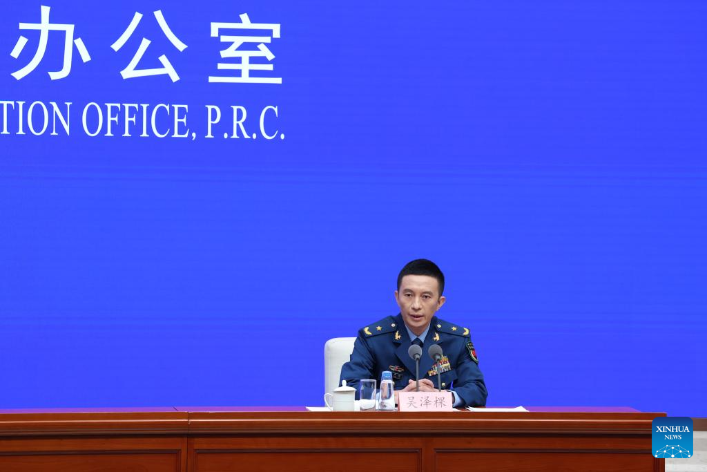 Major General Wu Zeke, deputy director of the Leading Group Office of Military Parade and deputy director general of the Operation Bureau of the Joint Staff Department of the Central Military Commission, speaks at a press conference held by China's State Council Information Office on plans for marking the 80th anniversary of the victory in the Chinese People's War of Resistance Against Japanese Aggression and the World Anti-Fascist War, in Beijing, capital of China, June 24, 2025. Hu Heping (not in the picture), executive vice minister of the Publicity Department of the Communist Party of China Central Committee, and Wu briefed the media on the arrangement of commemorative activities and took questions. (Xinhua/Jin Liangkuai)