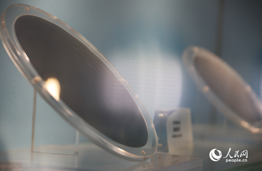 Photo shows 12-inch silicon wafers produced by Wafer Works (Zhengzhou) Corporation in the Zhengzhou Airport Economy Zone, Zhengzhou, central China's Henan Province. (People's Daily Online/Huo Yaping)