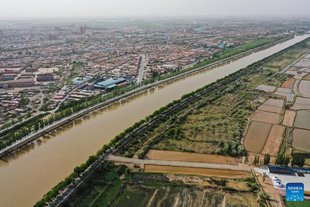 This photo taken on May 28, 2025 shows a canal in Linhe District of Bayannur, north China's Inner Mongolia Autonomous Region. (Xinhua/Li Zhipeng)
