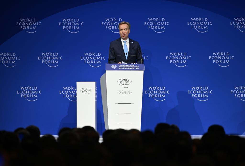 World Economic Forum President Borge Brende speaks during the opening plenary of the Summer Davos at the National Convention and Exhibition Center (Tianjin) in north China's Tianjin Municipality, June 25, 2025. (Xinhua/Sun Fanyue)