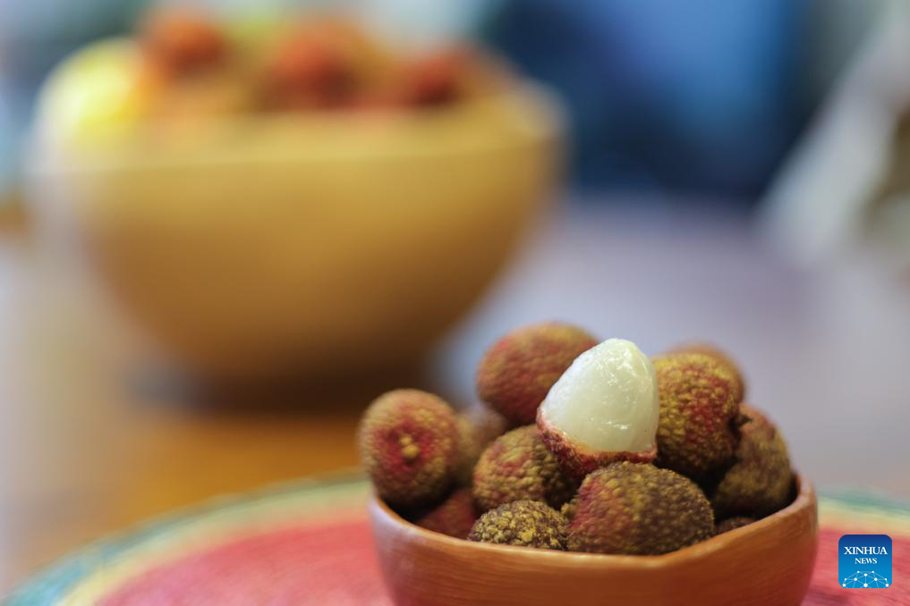 Lychees are pictured in Mexico City, capital of Mexico, June 24, 2025. (Photo by Francisco Canedo/Xinhua)