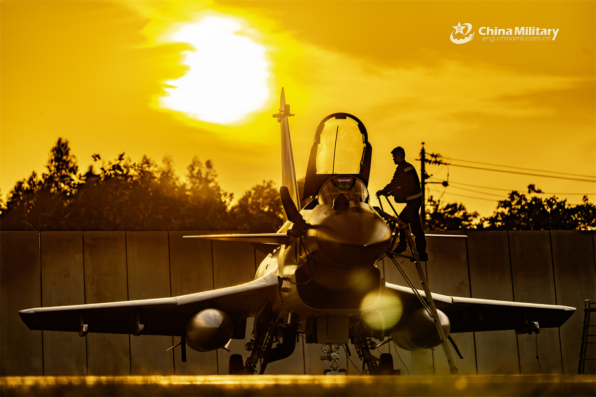 Maintenance man assigned to a unit under the Chinese PLA Air Force conducts pre-flight inspection on a J-10 fighter jet during a recent flight training exercise. (eng.chinamil.com.cn/Photo by Xiao Rui)