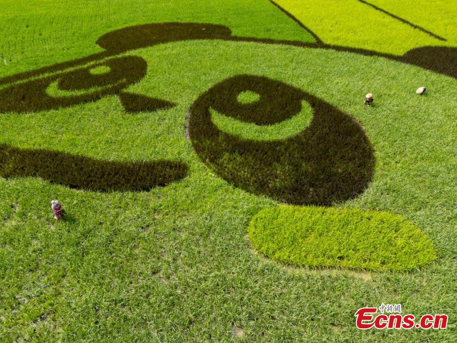 A giant panda pattern is created in a vast rice field at the Tianfu Granary National Modern Agricultural Industrial Park in Chengdu, southwest China's Sichuan Province, June 25, 2025. (Photo: China News Service/Zhang Lang)