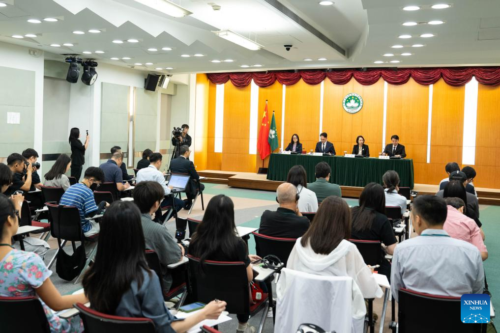 O Lam, secretary for social affairs and culture of China's Macao Special Administrative Region (SAR) government, speaks during a press conference in south China's Macao, June 26, 2025. (Xinhua/Cheong Kam Ka)
