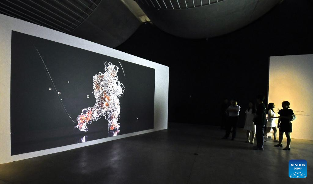 People visit the digital art exhibition "Future You: Code and Soul" at the 798 art zone in Beijing, capital of China, June 29, 2025. The exhibition explores the artistic fusion of digital code and human emotion in today's rapidly evolving age of artificial intelligence. (Xinhua/Li Xin)