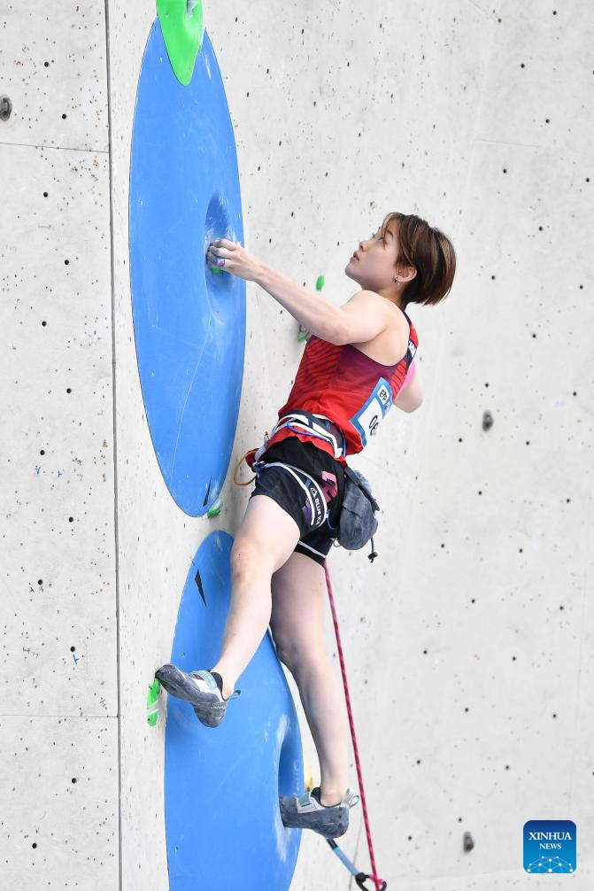 Wei Yali of China competes during the women's lead qualification at the International Federation of Sport Climbing (IFSC) World Cup in Innsbruck, Austria, June 28, 2025. (Xinhua/Lian Yi)