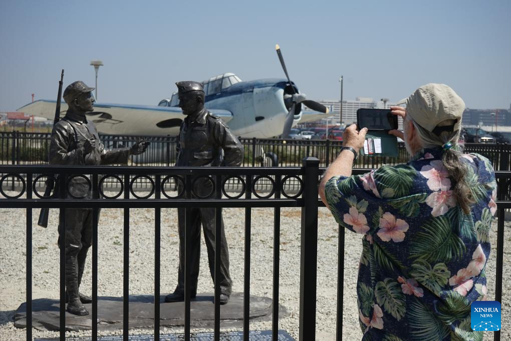 LOS ANGELES, June 28 (Xinhua) -- A ceremony unveiling sculptures of "Flying Tigers" was held on Saturday to commemorate the 80th anniversary of the victory in the Chinese People's War of Resistance Against Japanese Aggression and the World Anti-Fascist War.