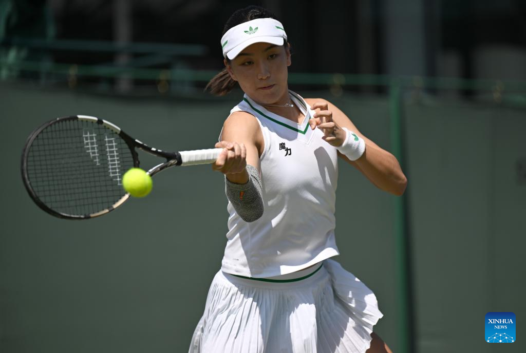 LONDON, July 1 (Xinhua) -- Wang Xinyu of China cruised past Czech Republic's Karolina Muchova in two straight sets 7-5, 6-2 to reach the women's singles second round at Wimbledon here on Tuesday.