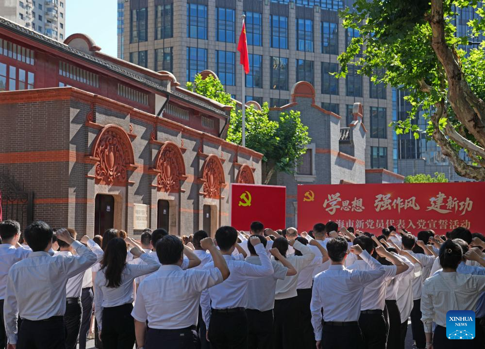 Representatives of new members of the Communist Party of China attend an oath-taking ceremony to join the Party at the site of the first National Congress of the Communist Party of China in Shanghai, east China, July 1, 2025. A series of events celebrating the 104th founding anniversary of the Communist Party of China (CPC) were held at the memorial of the First National Congress of the CPC on Tuesday. (Xinhua/Liu Ying)