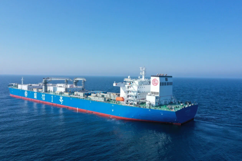 What kind of ship can be used for fish farming? Not long after departing, a massive vessel came into view on the open sea, with the name Guoxin-1 painted on its hull.