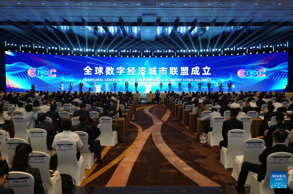 This photo taken on July 2, 2025 shows the inaugural ceremony of the Global Digital Economy Cities Alliance during the opening ceremony of the 2025 Global Digital Economy Conference in Beijing, capital of China. With the theme "Building a Digital-Friendly City", the 2025 Global Digital Economy Conference opened here on Wednesday. (Xinhua/Zhang Chenlin)
