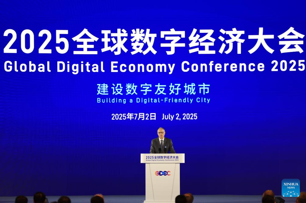 This photo taken on July 2, 2025 shows the opening ceremony of the 2025 Global Digital Economy Conference in Beijing, capital of China. With the theme "Building a Digital-Friendly City", the 2025 Global Digital Economy Conference opened here on Wednesday. (Xinhua/Zhang Chenlin)