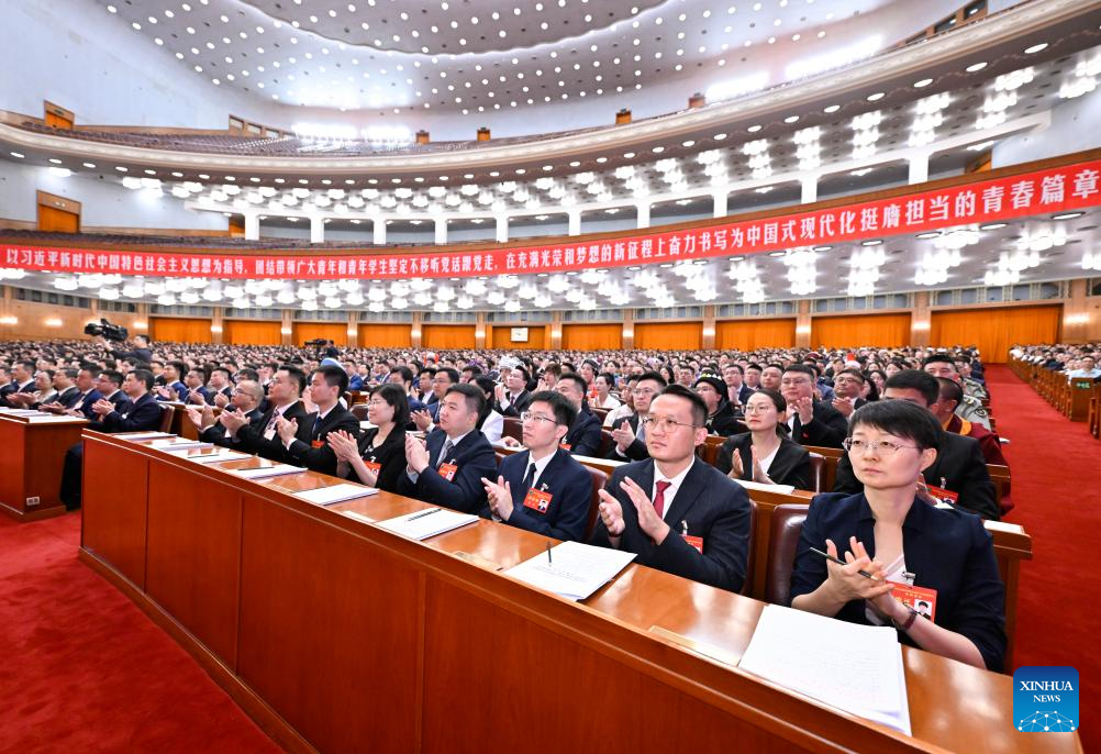 A session of the All-China Youth Federation and a congress of the All-China Students' Federation open in Beijing, capital of China, July 2, 2025. (Xinhua/Yue Yuewei)