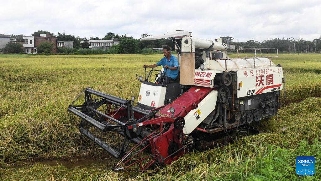 Early rice harvest in full swing in Qinzhou City, China's Guangxi