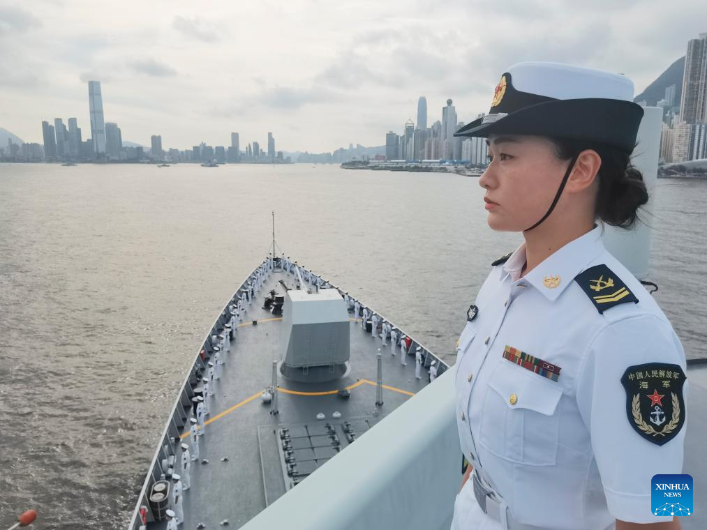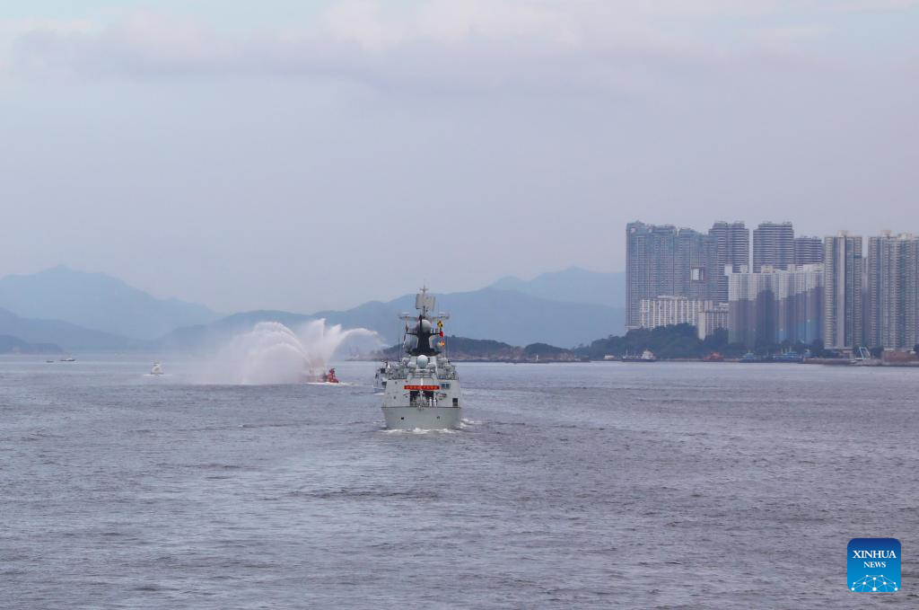 HONG KONG, July 3 (Xinhua) -- A fleet of the Chinese People's Liberation Army (PLA) Navy led by the aircraft carrier Shandong arrived in the Hong Kong Special Administrative Region (HKSAR) on Thursday morning, kicking off a five-day visit.