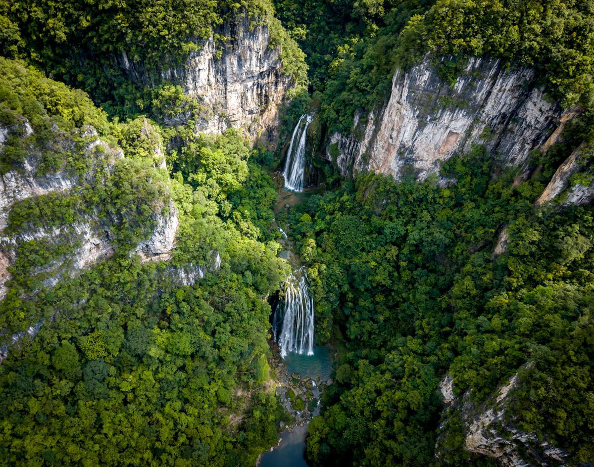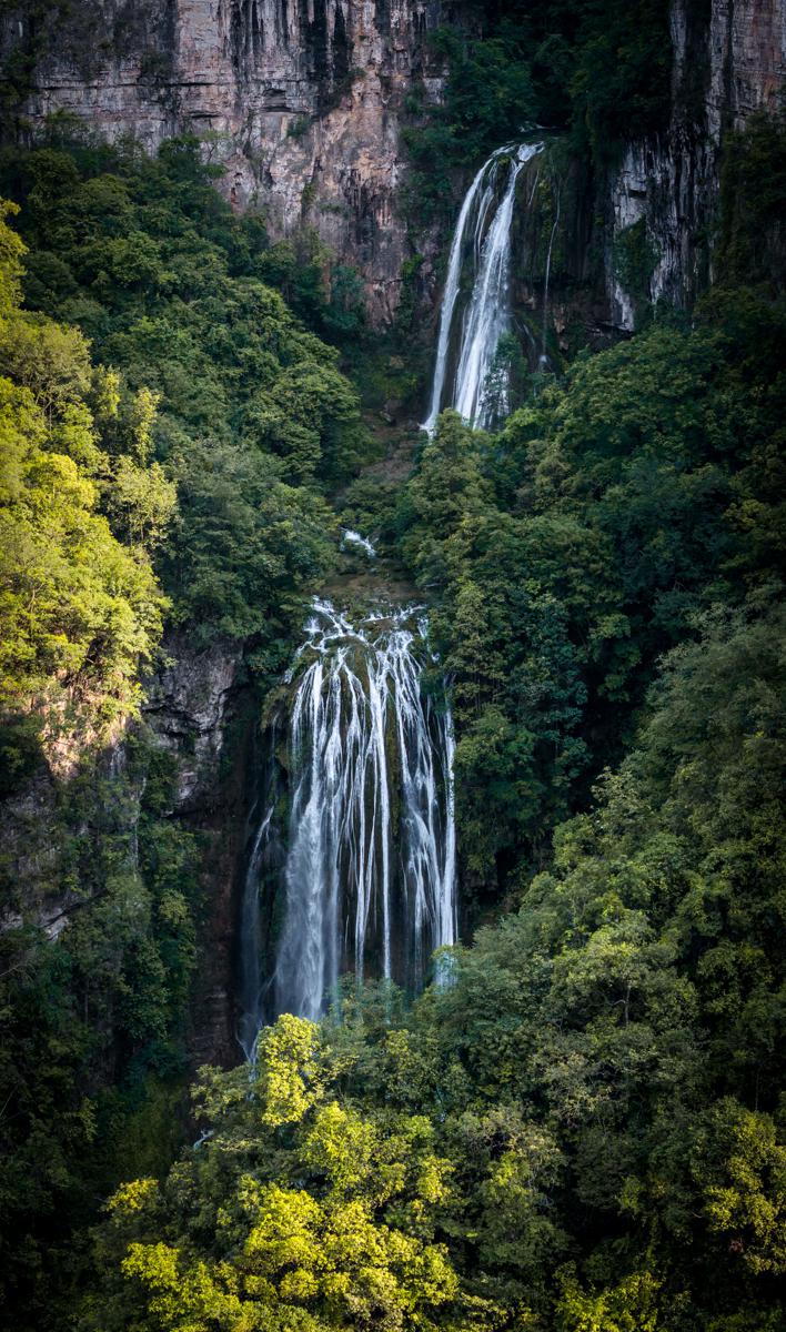 A photographer's glimpse reveals a canyon plunging more than 300 meters, its sheer cliffs carved as if by knife and axe. On the valley floor, two waterfalls steal the show.
