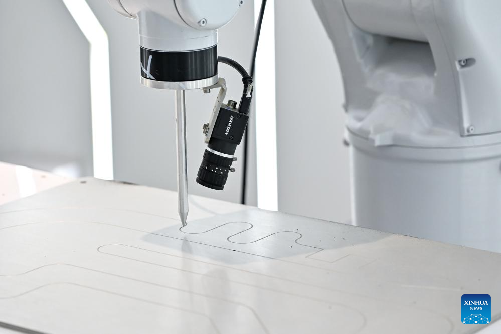This photo taken on July 3, 2025 shows a spray-painting robot at Anhui Efort Intelligent Equipment Co., Ltd. in Wuhu, east China's Anhui Province. (Xinhua/Zhang Cheng)