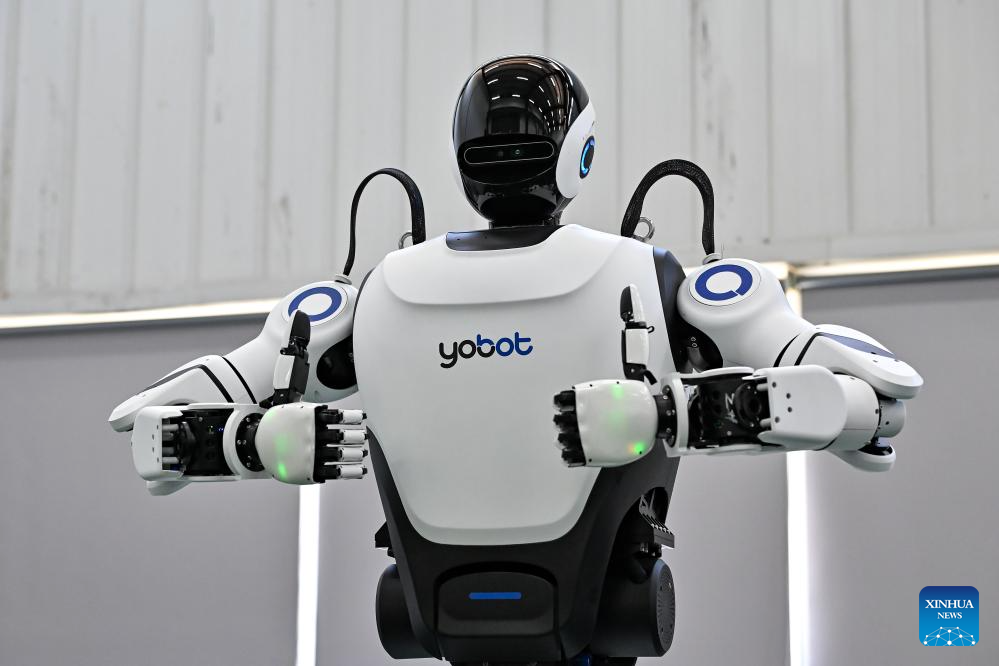 A humanoid robot makes gestures at Anhui Efort Intelligent Equipment Co., Ltd. in Wuhu, east China's Anhui Province, July 3, 2025. (Xinhua/Zhang Cheng)