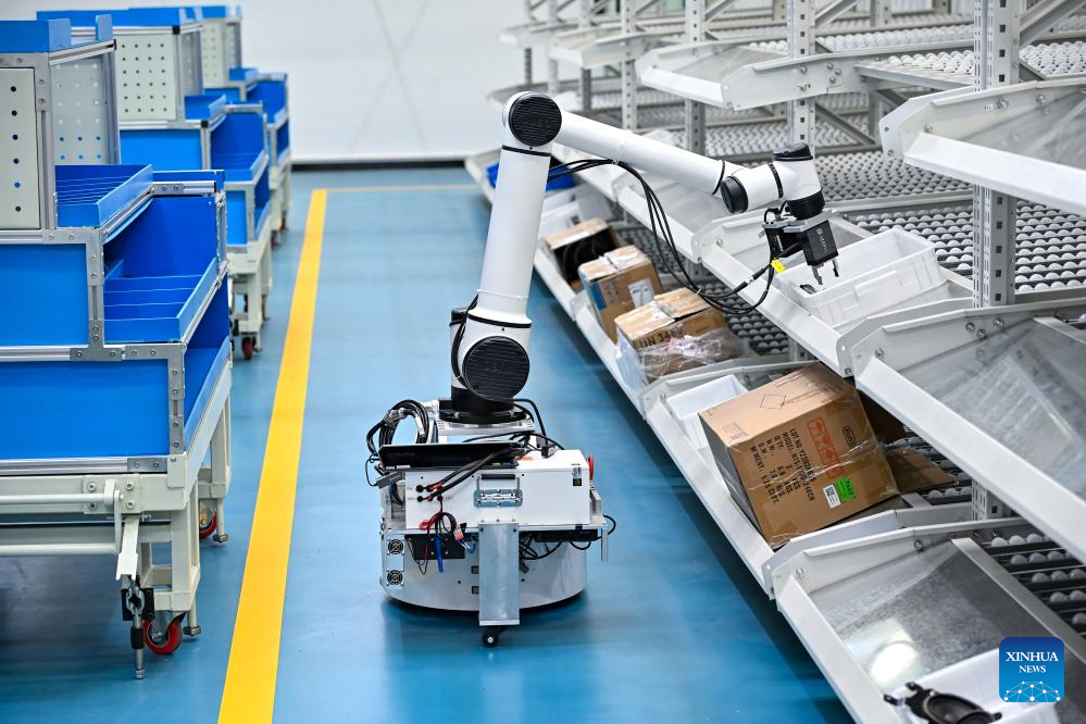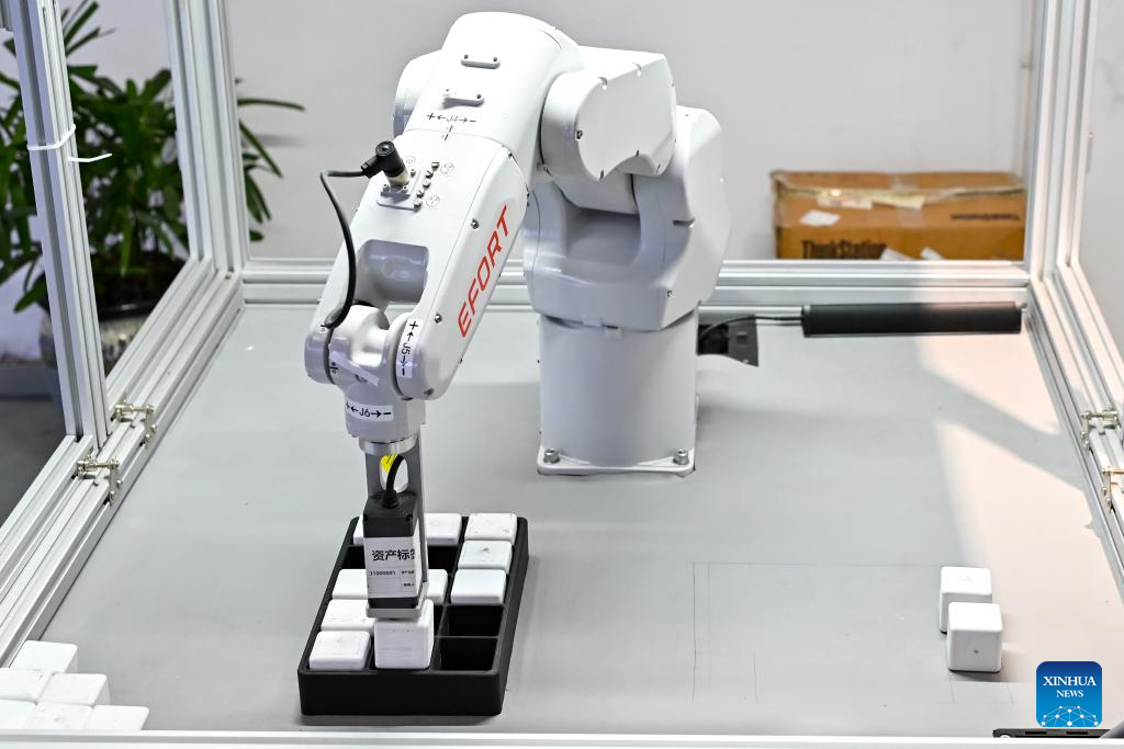 A collaborative robot automatically grasps and sorts components at Anhui Efort Intelligent Equipment Co., Ltd. in Wuhu, east China's Anhui Province, July 3, 2025. (Xinhua/Zhang Cheng)