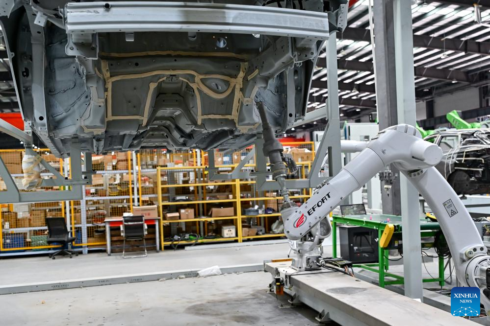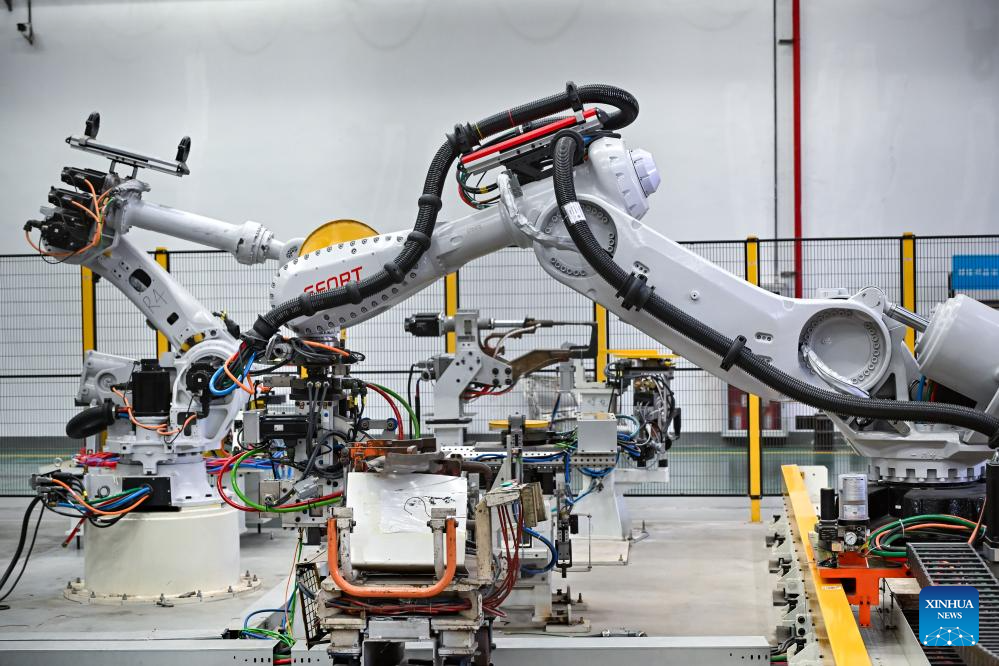 This photo taken on July 3, 2025 shows a welding robot at Anhui Efort Intelligent Equipment Co., Ltd. in Wuhu, east China's Anhui Province. (Xinhua/Zhang Cheng)