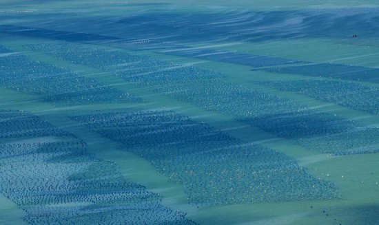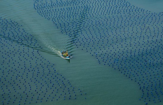 An aerial drone photo taken on July 3, 2025 shows a national-level marine ranch in Lianjiang County of Fuzhou, southeast China's Fujian Province. (Xinhua/Wei Peiquan)