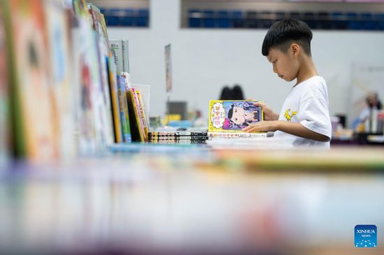 A child reads a book at the 28th Macao Book Carnival in south China's Macao, July 4, 2025. (Xinhua/Cheong Kam Ka)
