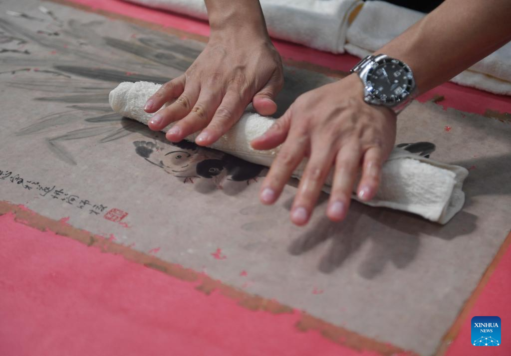 A contestant competes in paper calligraphy and painting relic restoration during the 2nd National Cultural Heritage Vocational Skills Competition in Luzhou City, southwest China's Sichuan Province, July 4, 2025. Starting from July 3, the four-day event attracted nearly 300 contestants competing in six categories. (Xinhua/Liu Kun)