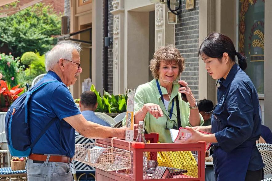 Foreign tourists visit a pedestrian in Shanghai, June 24, 2025. (Photo by Wang Gang/People's Daily Online)