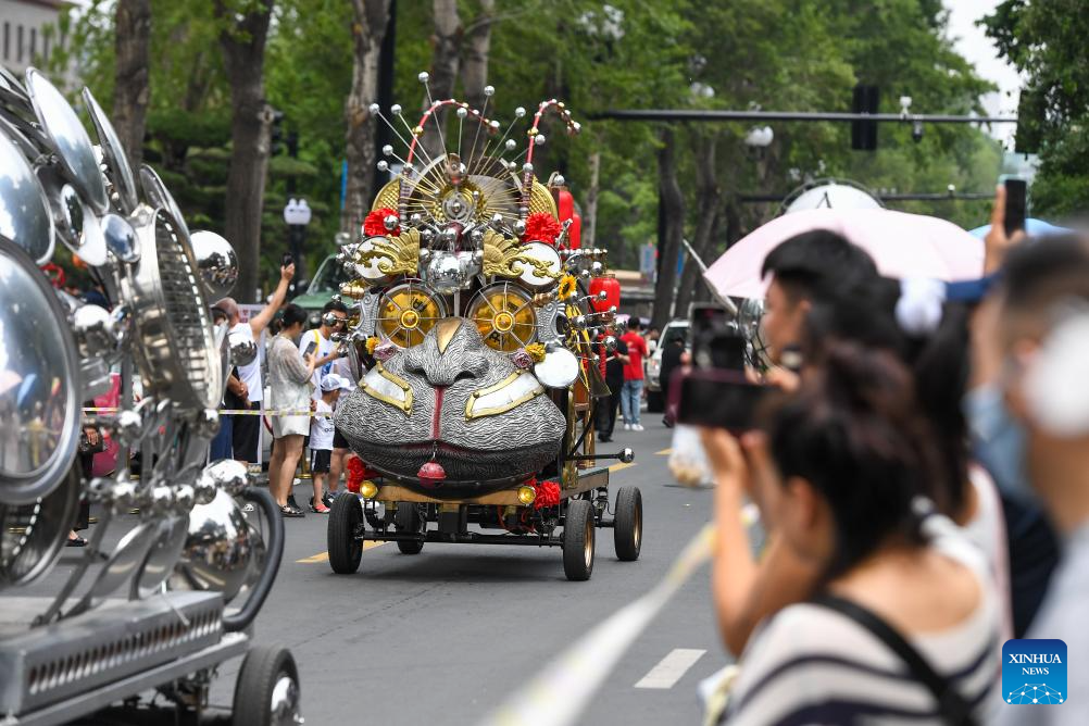 Floats are pictured on Xinmin Street in Changchun, northeast China's Jilin Province, July 5, 2025. Xinmin Street, a historical and cultural street in Changchun of Jilin Province, officially opened to the public on Saturday following renovation.