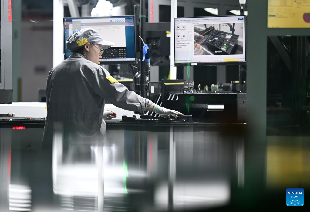 A staff member works at the laptop assembly line of the carbon-neutral smart manufacturing factory of Lenovo in north China's Tianjin, July 4, 2025. In recent years, Tianjin has been committed to building smart factories and accelerating the deep integration of the digital economy with the real economy. As of now, the city has established a total of 400 smart factories and digital workshops, continuously promoting the digital transformation of its manufacturing sector. (Xinhua/Zhao Zishuo)