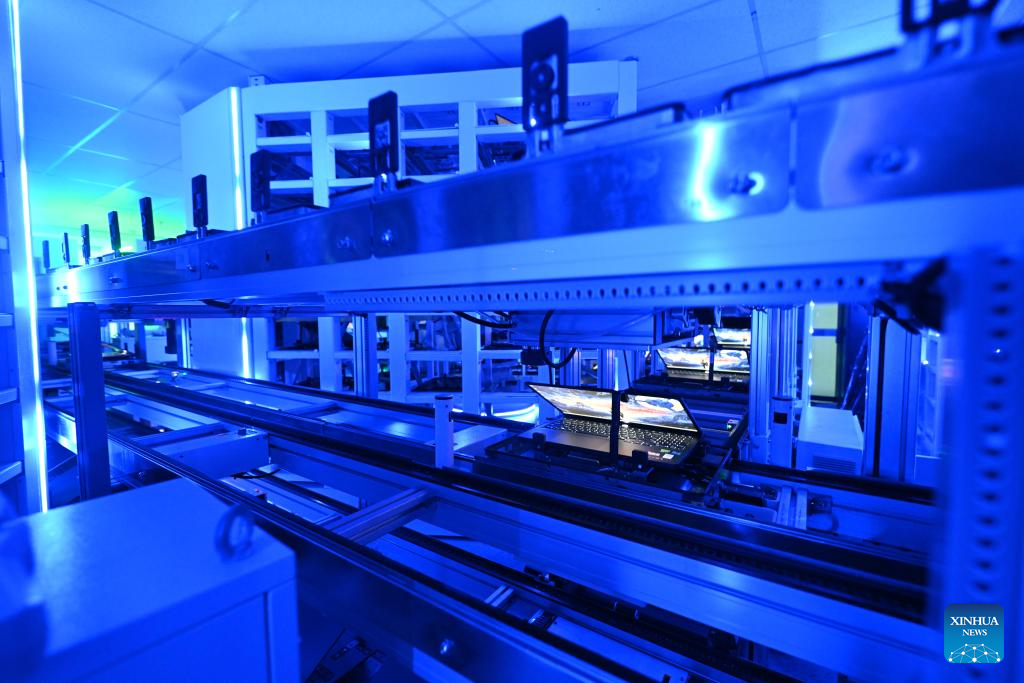 This photo taken on July 4, 2025 shows the laptop testing area of the carbon-neutral smart manufacturing factory of Lenovo in north China's Tianjin. In recent years, Tianjin has been committed to building smart factories and accelerating the deep integration of the digital economy with the real economy. As of now, the city has established a total of 400 smart factories and digital workshops, continuously promoting the digital transformation of its manufacturing sector. (Xinhua/Zhao Zishuo)