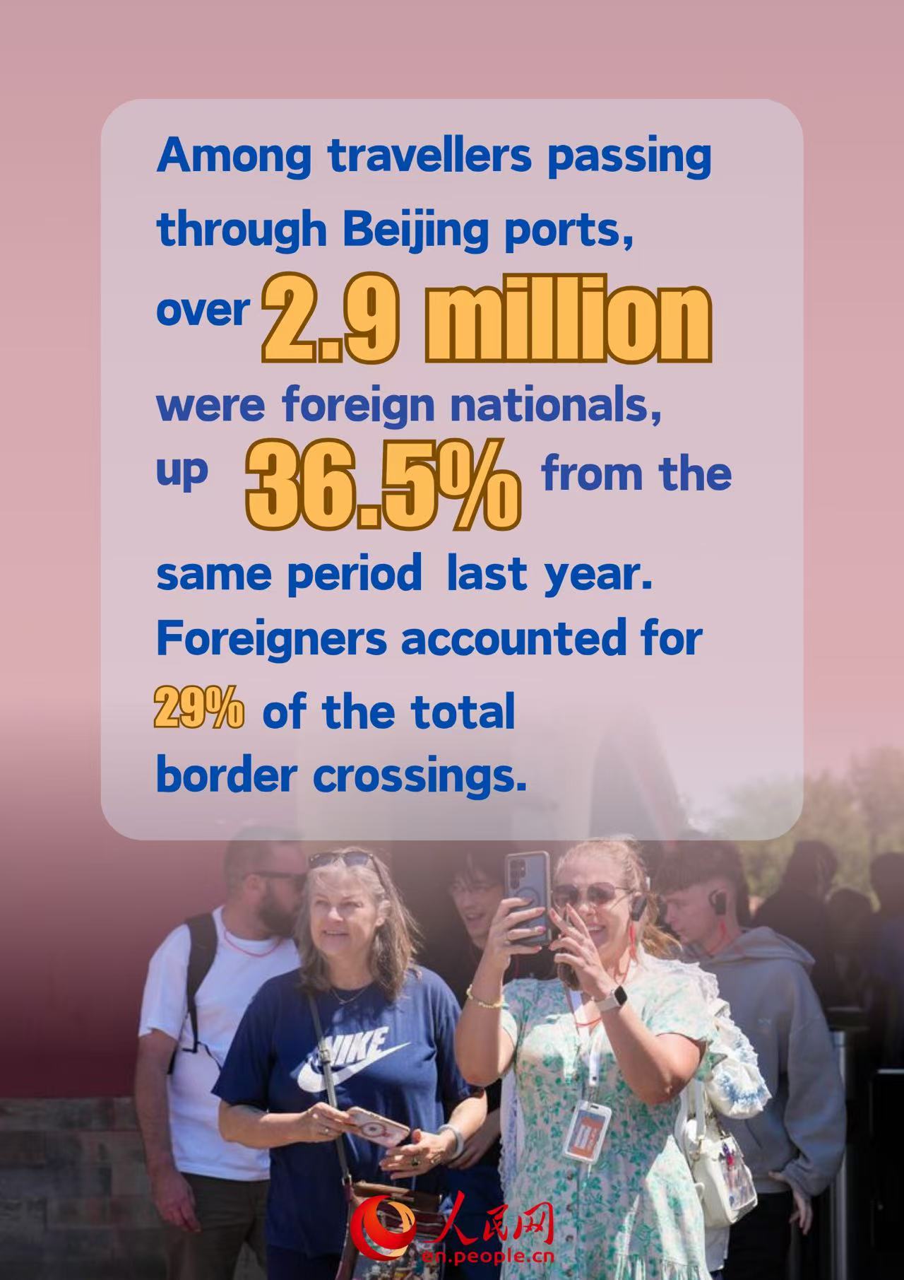 According to data released by the Beijing General Station of Exit and Entry Frontier Inspection, more than 10 million travellers passed through Beijing ports as of June 30, marking a 19.6 percent year-on-year increase. Among them, over 2.9 million were foreign nationals, up 36.5 percent from the same period last year. Foreigners accounted for 29 percent of the total border crossings.