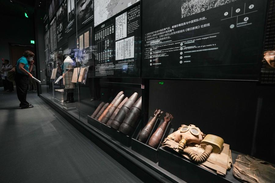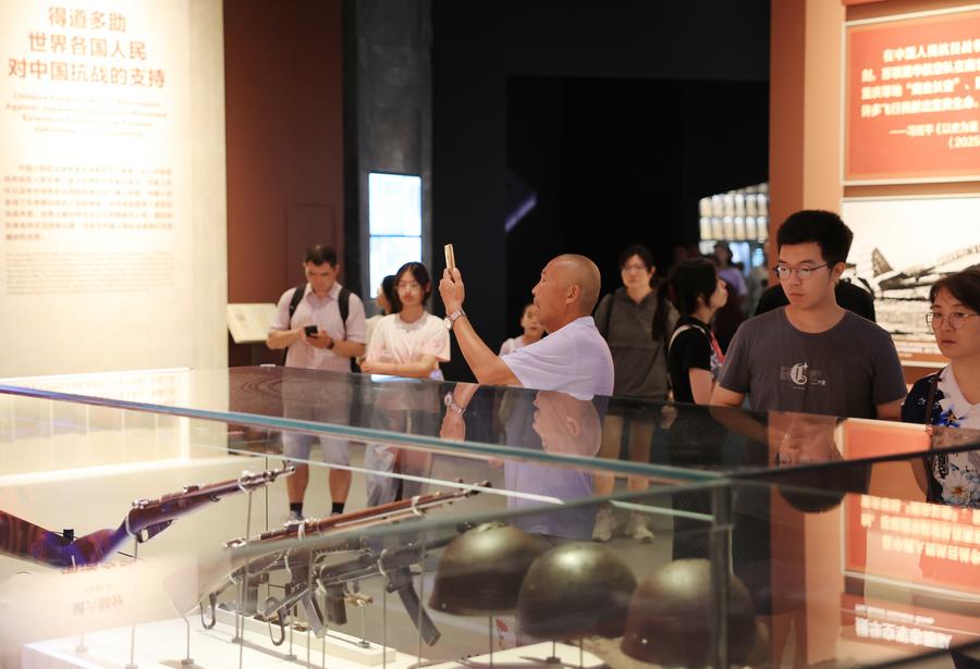 People visit an exhibition themed "For National Liberation and World Peace" at the Museum of the War of Chinese People's Resistance Against Japanese Aggression in Beijing, capital of China, July 8, 2025. (Xinhua/Zhang Chenlin)