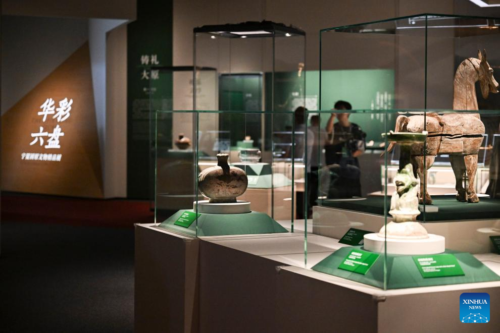 This photo taken on July 8, 2025 shows a cultural relic exhibition at the Shanghai Museum East in east China's Shanghai. The exhibition, featuring over 300 cultural relics from Guyuan City of northwest China's Ningxia Hui Autonomous Region, opened in Shanghai on Tuesday. (Xinhua/Chen Haoming)