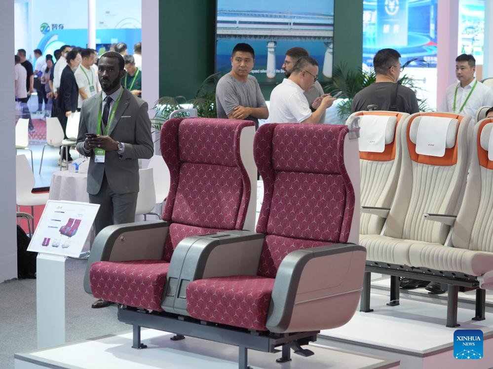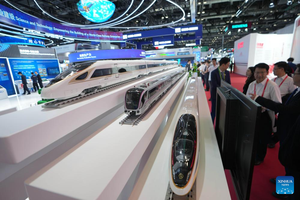 People visit the Modern Railways 2025 exhibition in Beijing, capital of China, July 8, 2025. The exhibition kicked off here on Tuesday, showcasing advanced railway technologies and equipments from all over the world. (Xinhua/Xing Guangli)