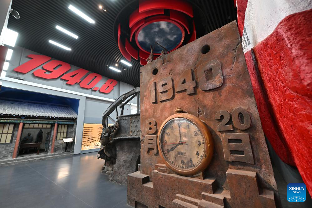 This photo taken on July 7, 2025 shows some exhibits at the memorial hall commemorating the Hundred-Regiment Campaign in Yangquan, north China's Shanxi Province. The Hundred-Regiment Campaign took place in northern China from August 1940 to January 1941 during the Chinese People's War of Resistance Against Japanese Aggression. (Xinhua/Zhan Yan)