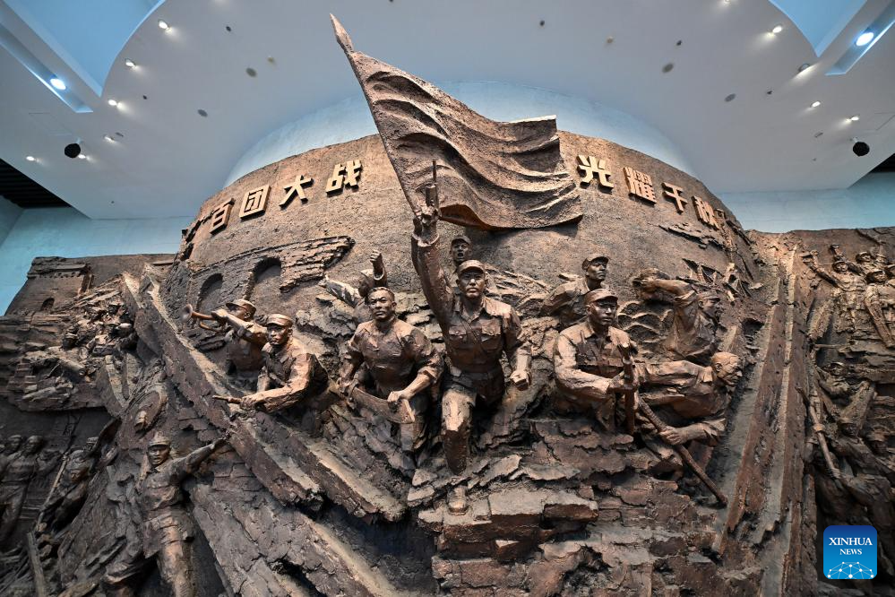 This photo taken on July 7, 2025 shows an interior view of the memorial hall commemorating the Hundred-Regiment Campaign in Yangquan, north China's Shanxi Province. The Hundred-Regiment Campaign took place in northern China from August 1940 to January 1941 during the Chinese People's War of Resistance Against Japanese Aggression. (Xinhua/Zhan Yan)