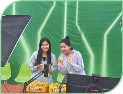 Livestreamers promote apricots in front of the camera in Yingjisha county, Kashgar, northwest China's Xinjiang Uygur Autonomous Region. (Photo/Wang Qing)