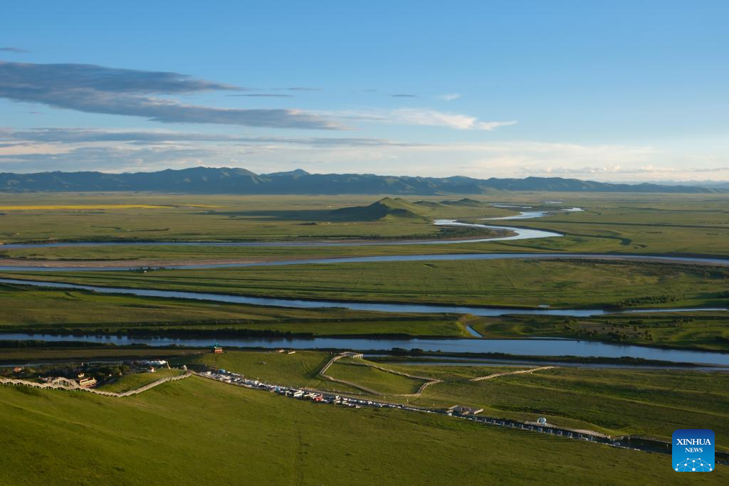 This photo taken on July 12, 2025 show scenery of the Yellow River in Ruoergai County, Aba Tibetan-Qiang Autonomous Prefecture, southwest China's Sichuan Province. Ruoergai County has recently entered its peak summer tourism season, attracting tourists nationwide. (Xinhua/Zhang Yawen)