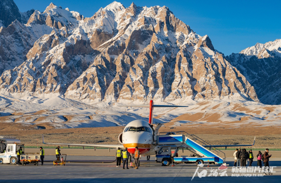 A C909 aircraft lands at Khunjerab Airport in Taxkorgan Tajik autonomous county, northwest China's Xinjiang Uygur autonomous region, Nov. 30, 2024. (Photo by Wang Jiliang)