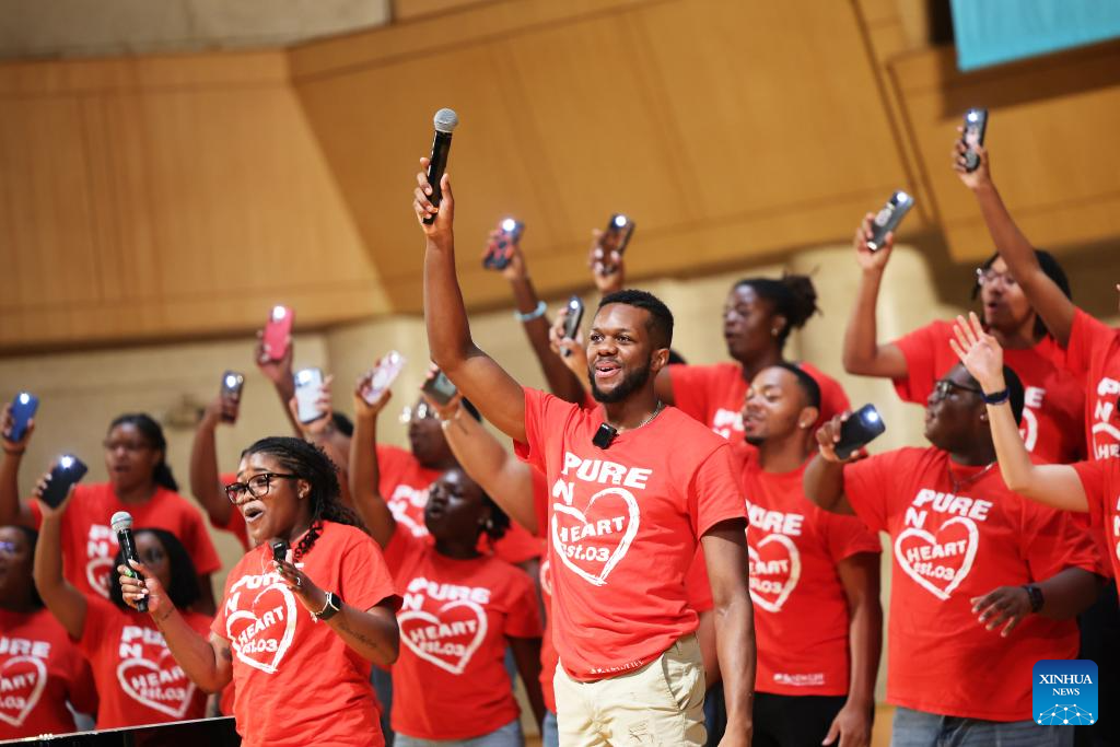 An American choir performs in Beijing, capital of China, July 14, 2025. Bond with Kuliang: 2025 China-U.S. Youth Choir Festival, with the theme of "Singing for Peace" is held in Beijing and Fuzhou from July 9 to 18.