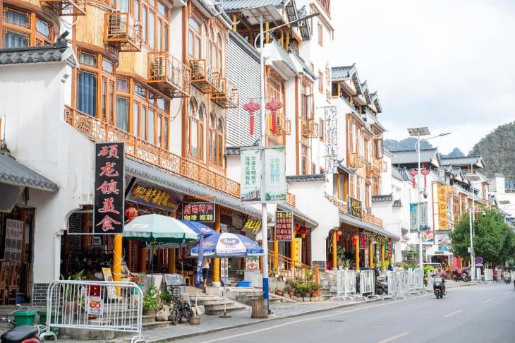 Photo shows a street view of Shuolong township, Daxin county, Chongzuo, south China's Guangxi Zhuang autonomous region. (Photo by Yan Lizheng/People's Daily Online)