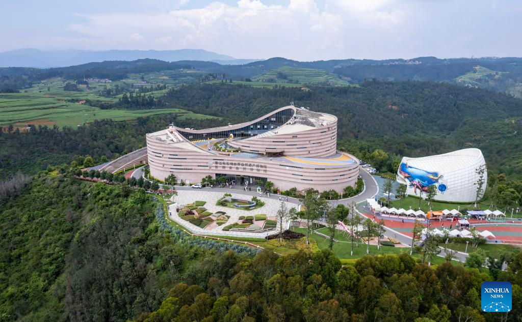 An aerial drone photo shows a view of the world natural heritage museum of the Chengjiang Fossil site in Chengjiang County, southwest China's Yunnan Province on July 15, 2025.