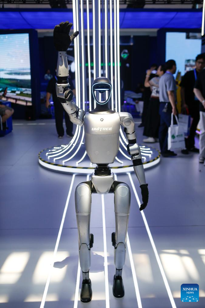 A robot of Unitree Robotics is pictured at the Digital Technology Chain area of the third China International Supply Chain Expo (CISCE) in Beijing, capital of China, July 17, 2025. Themed on "Connecting the World for a Shared Future," the expo, hosted by the China Council for the Promotion of International Trade, kicked off in Beijing on Wednesday.