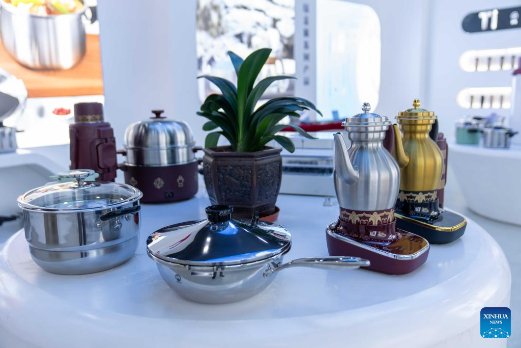 This photo shows products made for plateau areas at a cookware company in southwest China's Xizang Autonomous Region, July 17, 2025. Daily cooking is a major issue for residents of the Qinghai-Tibet Plateau, which has an average altitude of over 4,000 meters. Water boils at relatively low temperature due to the low air pressure there, making pressure cookers a necessity.