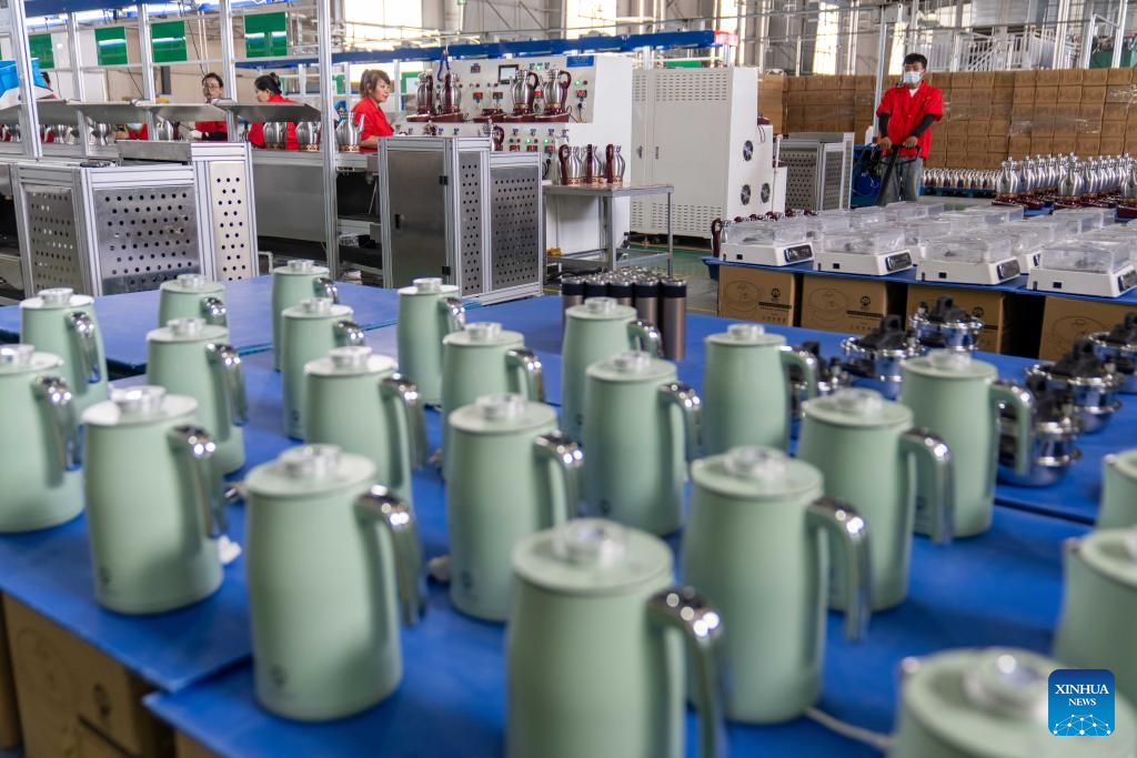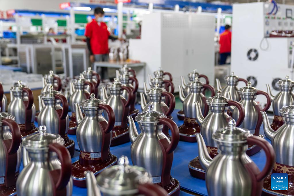 A staff member assembles a teapot at a cookware company in southwest China's Xizang Autonomous Region, July 17, 2025. Daily cooking is a major issue for residents of the Qinghai-Tibet Plateau, which has an average altitude of over 4,000 meters. Water boils at relatively low temperature due to the low air pressure there, making pressure cookers a necessity.
